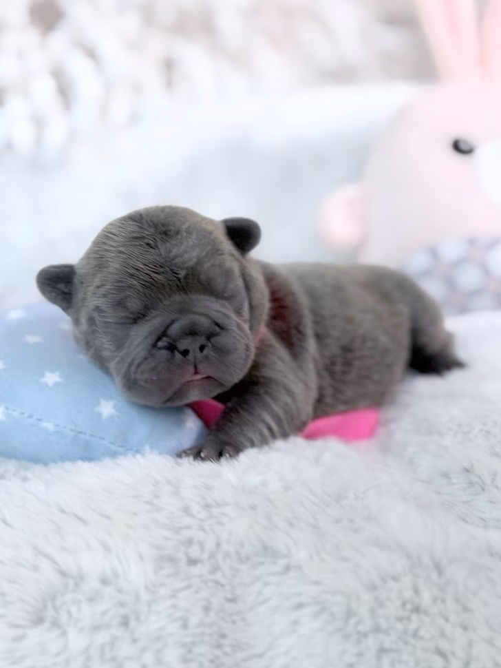 Exquisite Solid Blue Female Frenchie with Champion DNA – From Health-Tested Parents