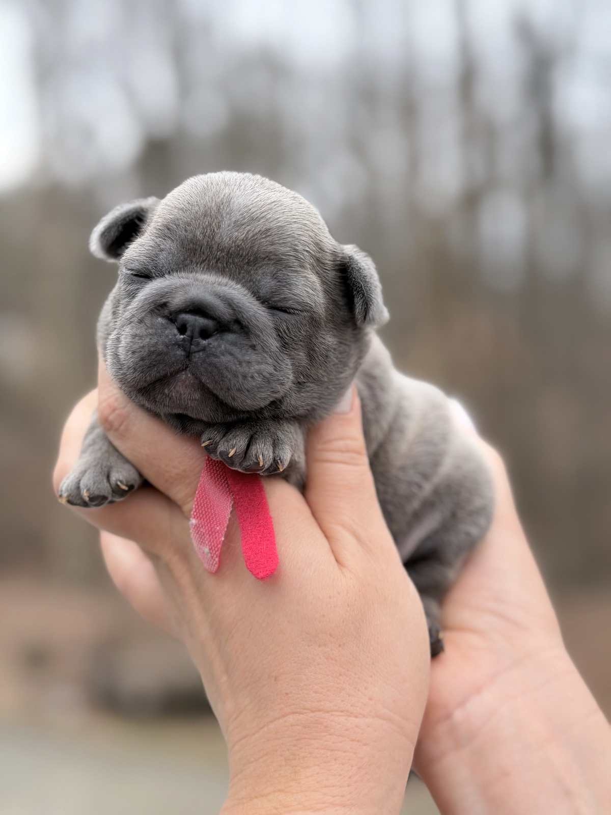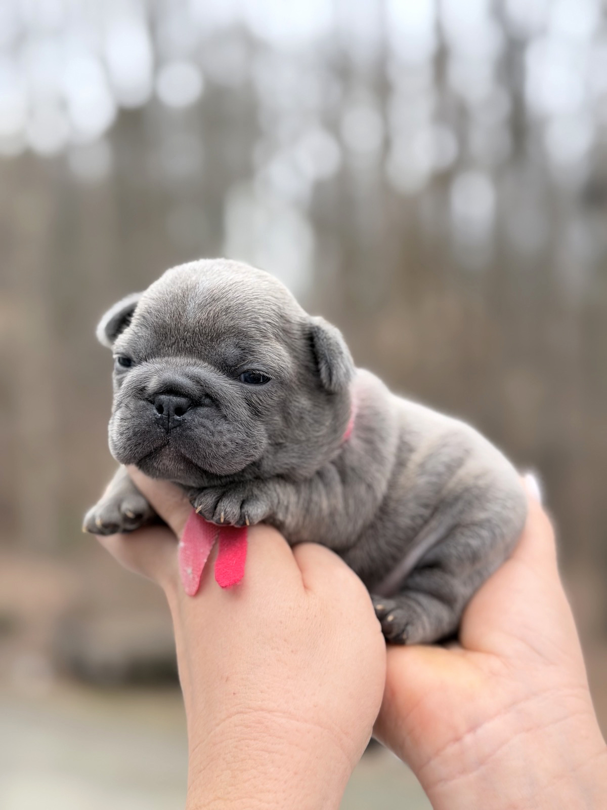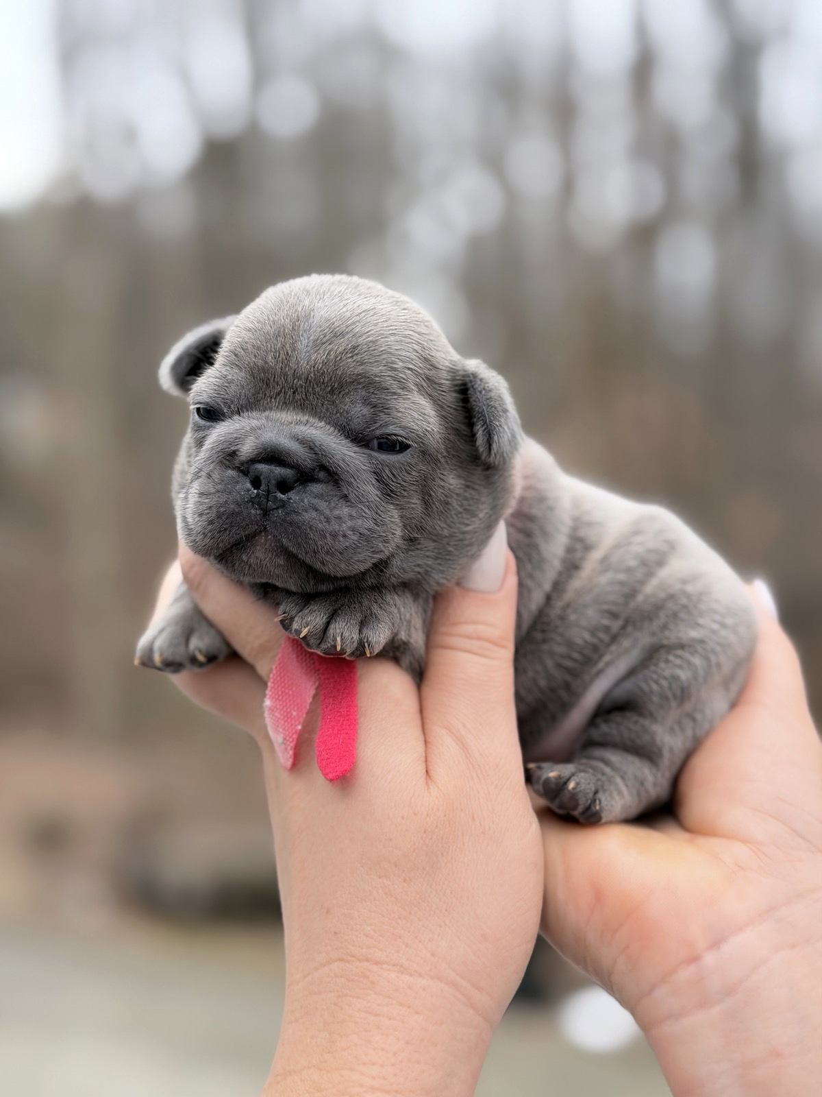This elegant Female Blue French Bulldog is a devoted family companion with a sweet, balanced nature. Raised within a nurturing home atmosphere, she is exceptionally well-socialized with kids and other domestic animals. Thanks to her versatile personality, she is an ideal choice for residents of both modern city apartments and expansive private estates.