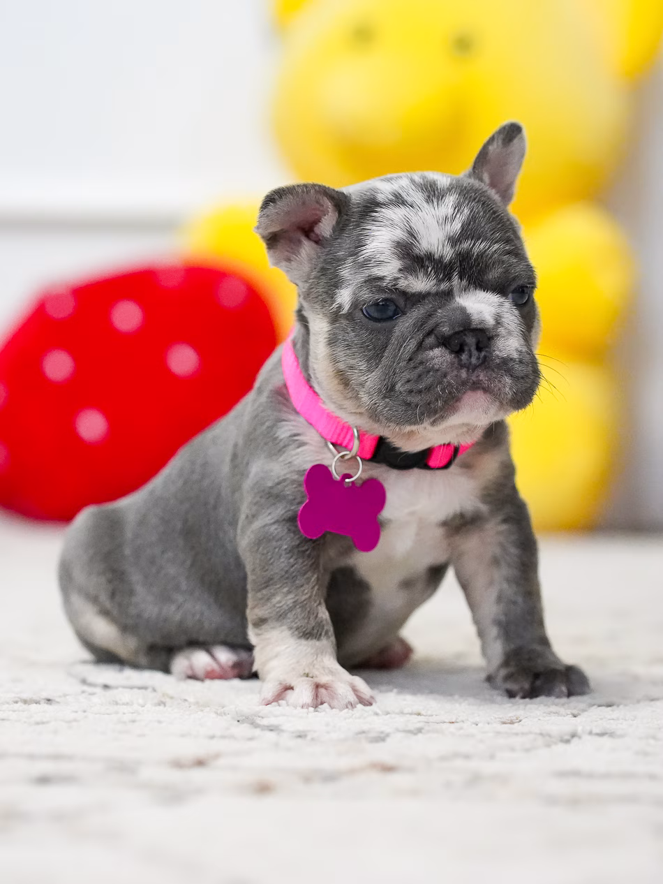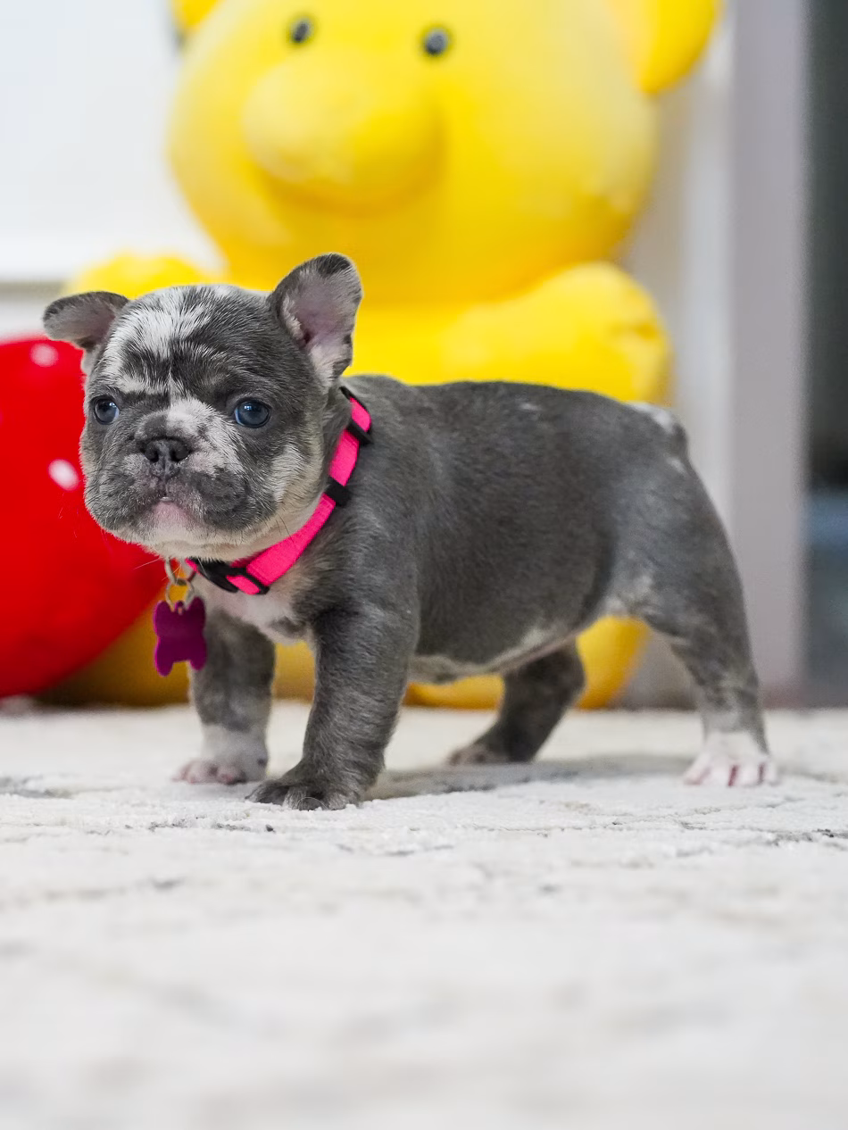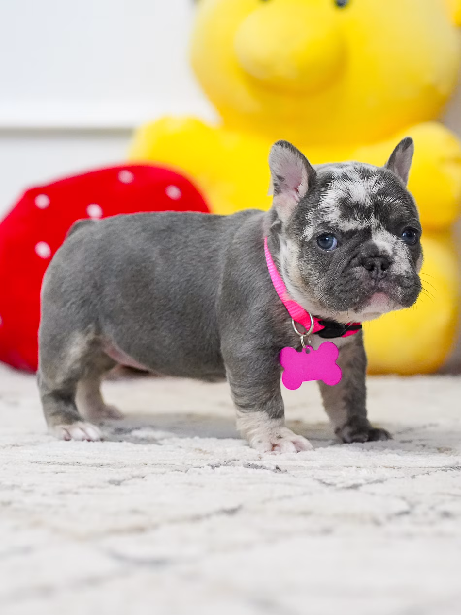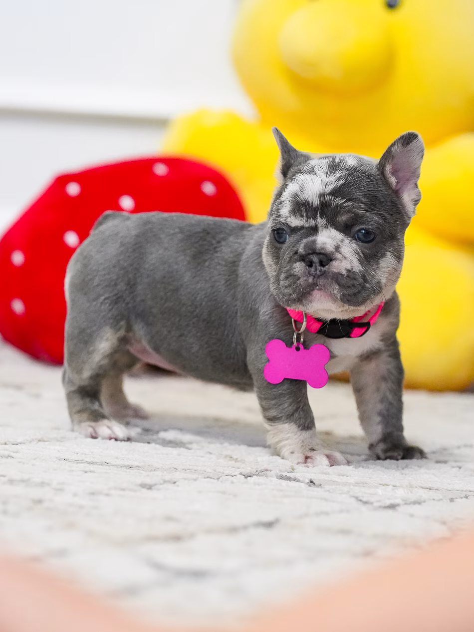 Puppy Profile: Rare Female French Bulldog This magnificent Frenchie displays a remarkable, unique coat and a gentle, affectionate spirit. Because of her calm nature, she is a perfect match for seniors or as a loyal household pet. Her adaptable build ensures she is equally comfortable in expansive country homes and stylish city lofts.