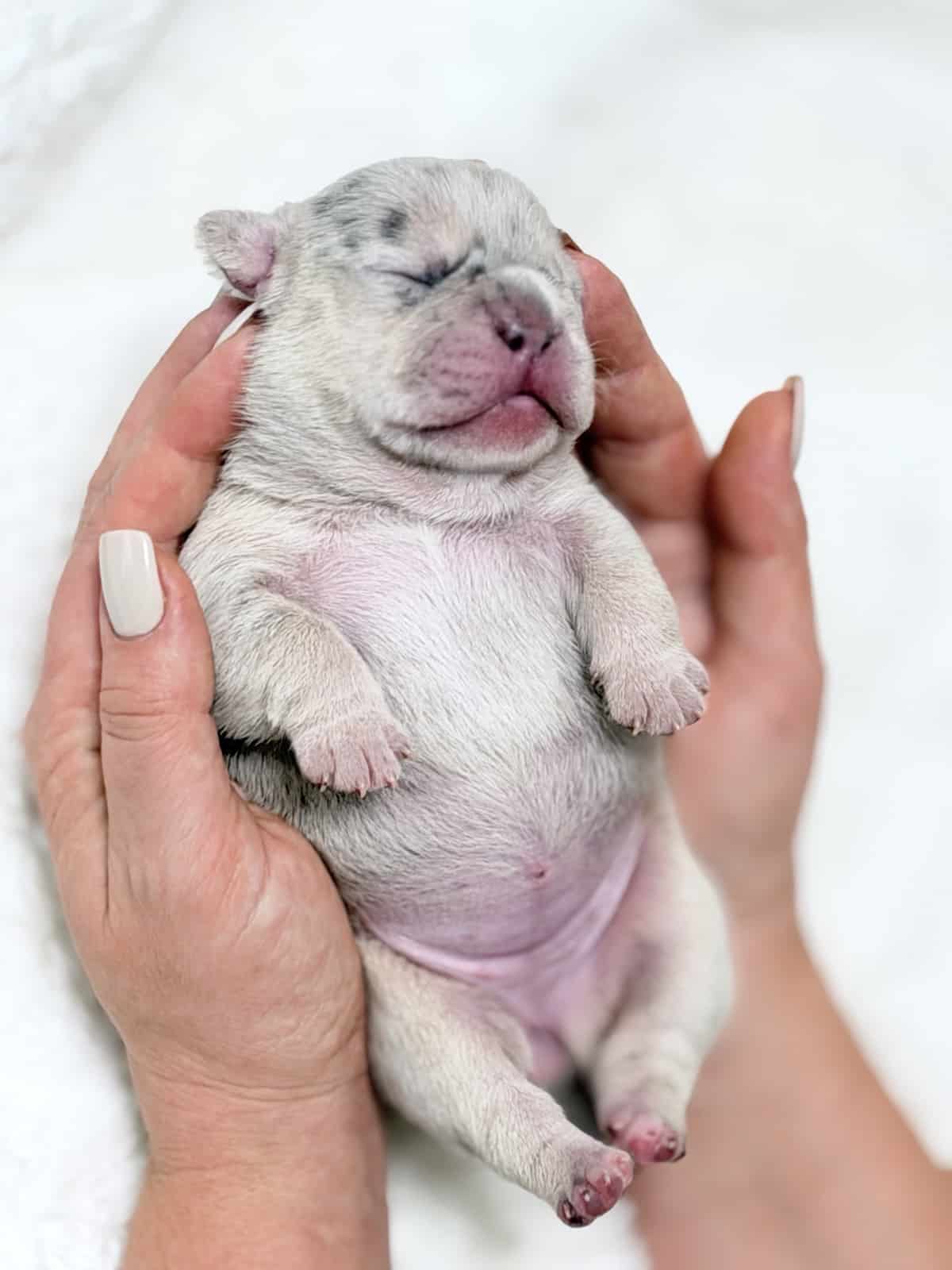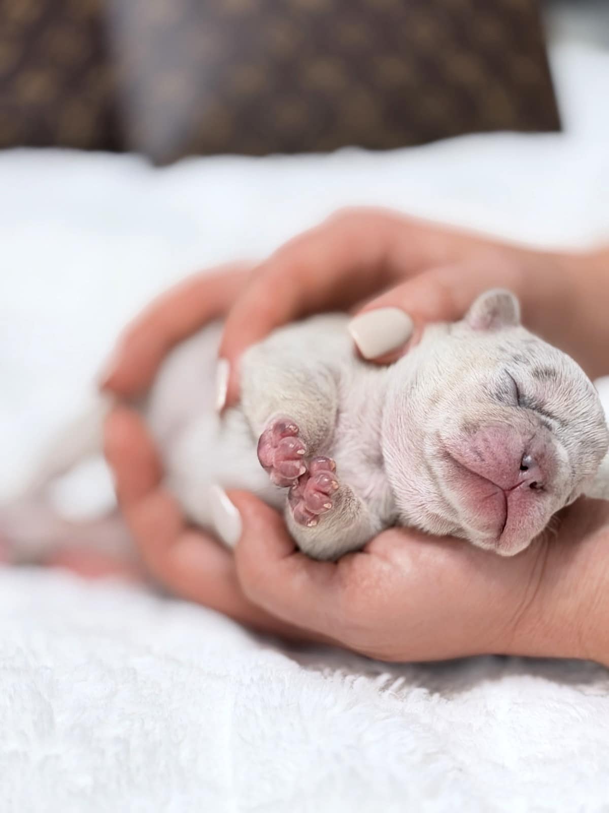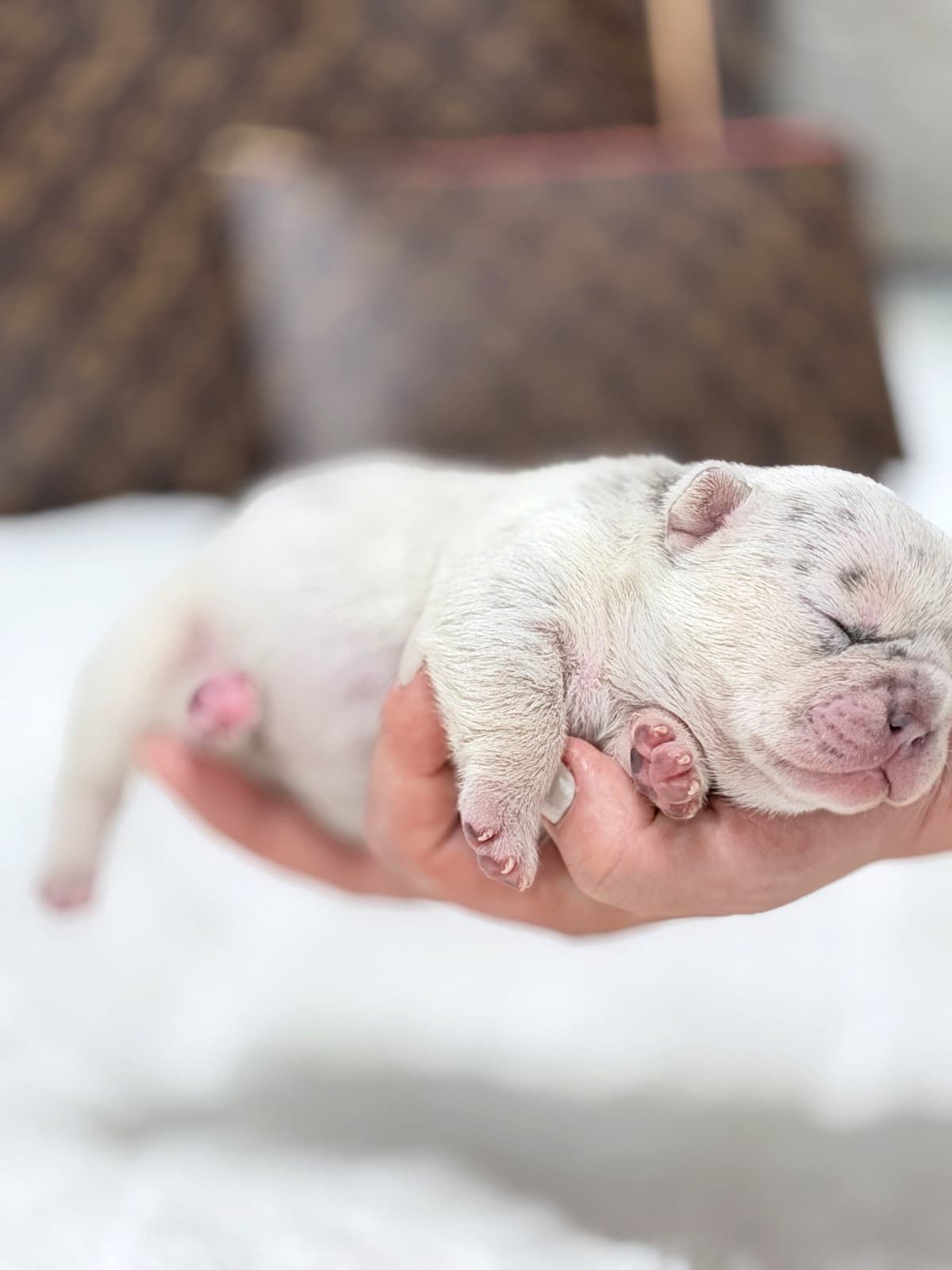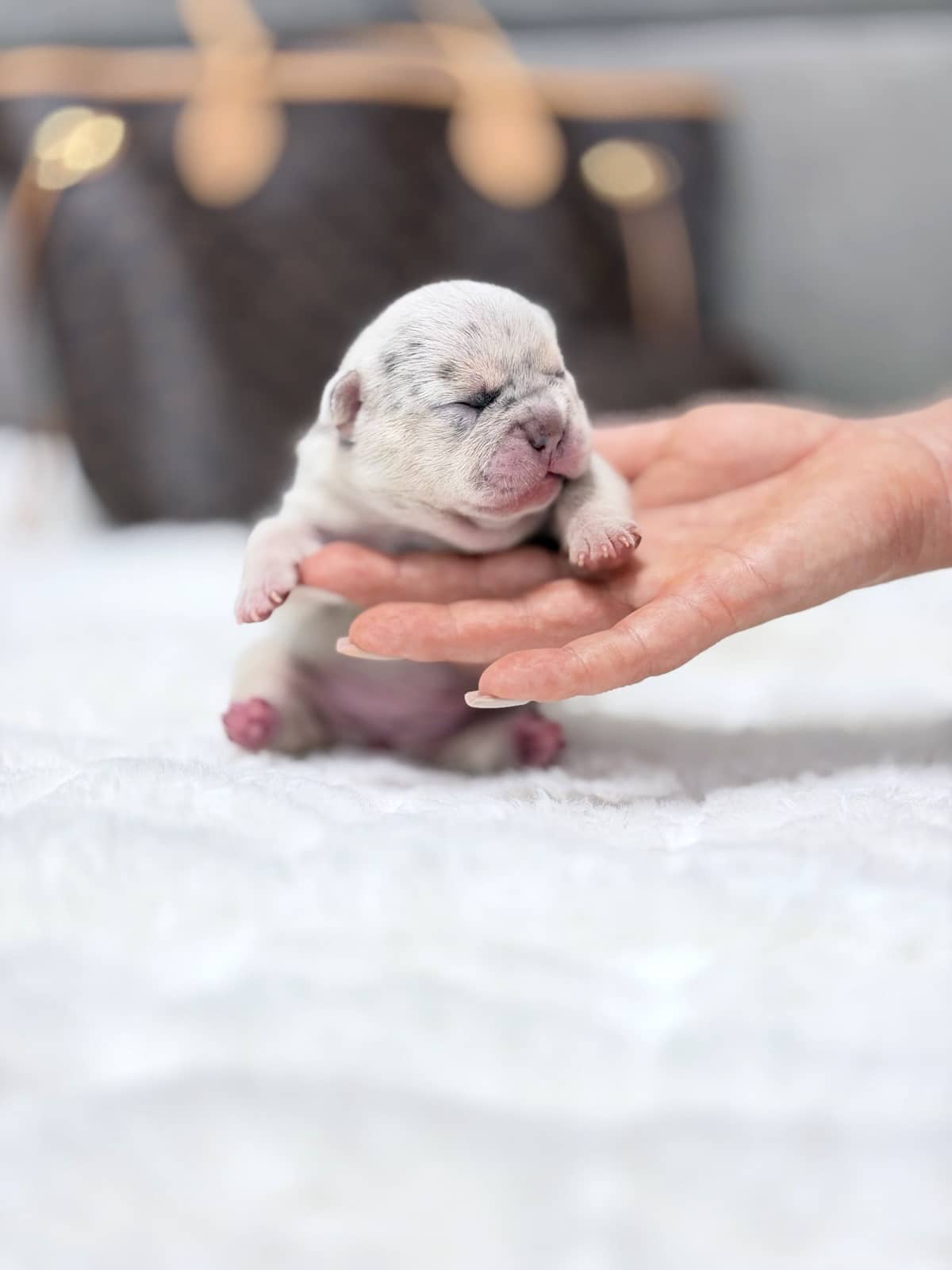 This elegant Female Blue Merle French Bulldog is a charming family addition with a gentle, balanced nature. Raised in a nurturing home atmosphere, she is perfectly socialized with children and other pets. Her adaptable personality makes her an ideal companion, whether you reside in a chic city apartment or a grand private estate.