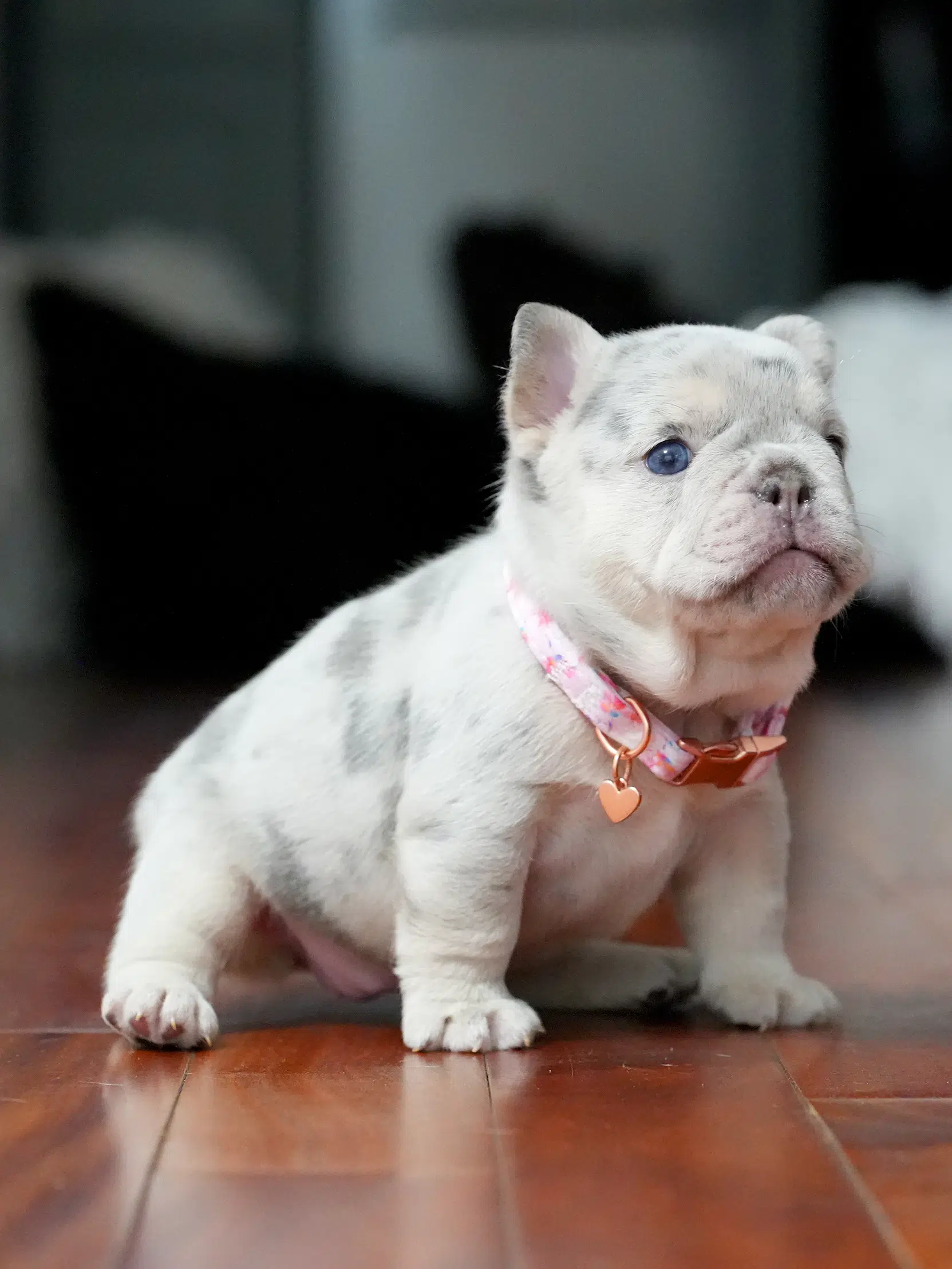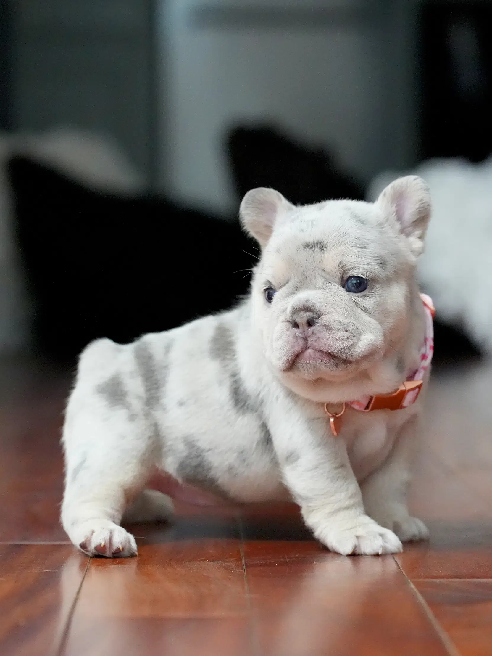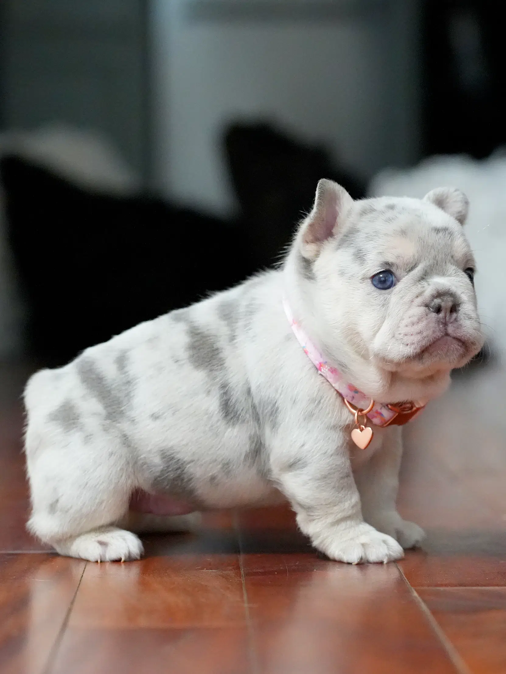 Puppy Profile: Rare Female French Bulldog This charming Frenchie boasts a unique coat and a calm, affectionate nature. Thanks to her gentle temperament, she is a wonderful match for seniors or as a loyal family pet. Her compact size ensures she fits perfectly into both luxury estates and cozy apartments.