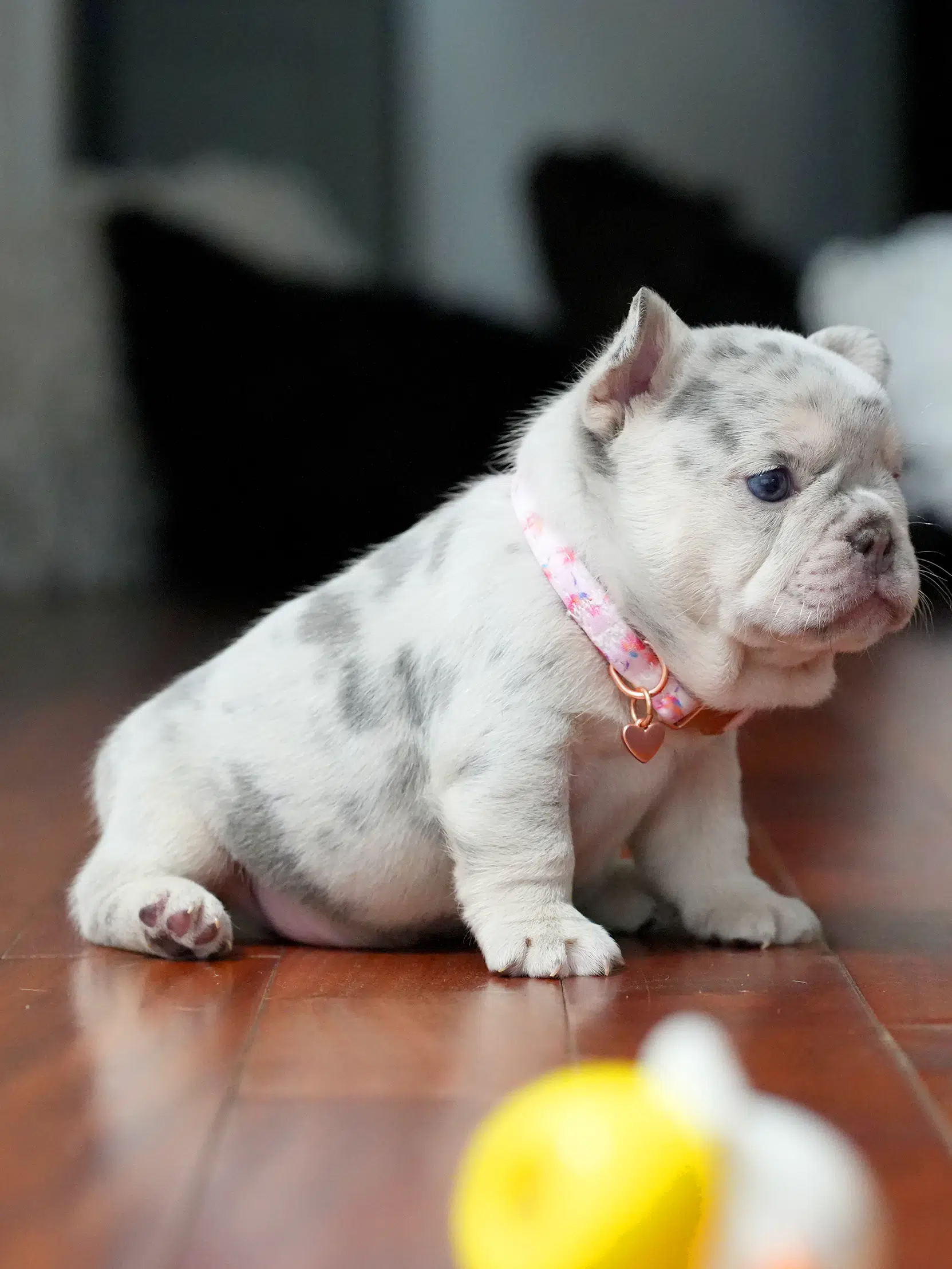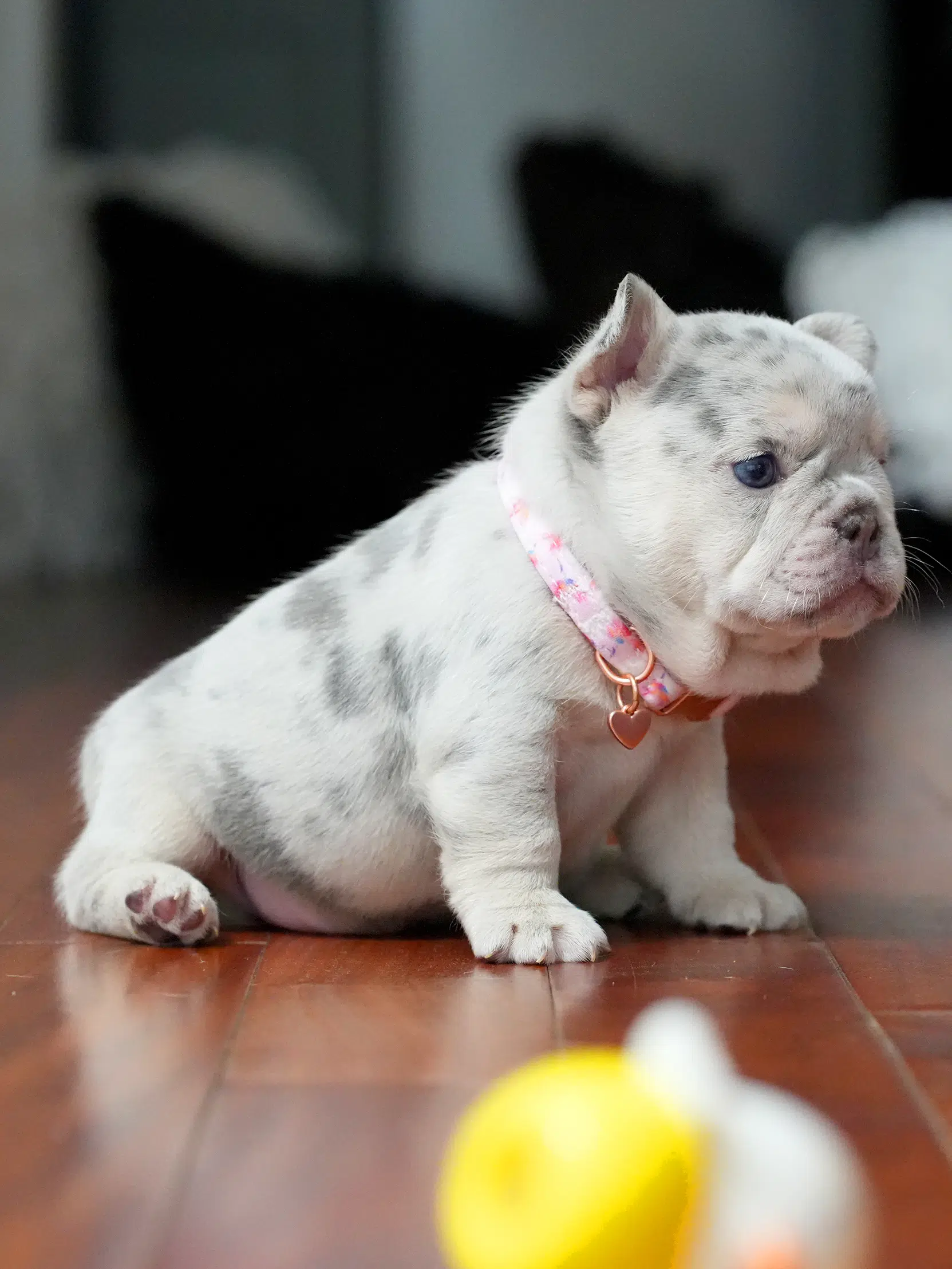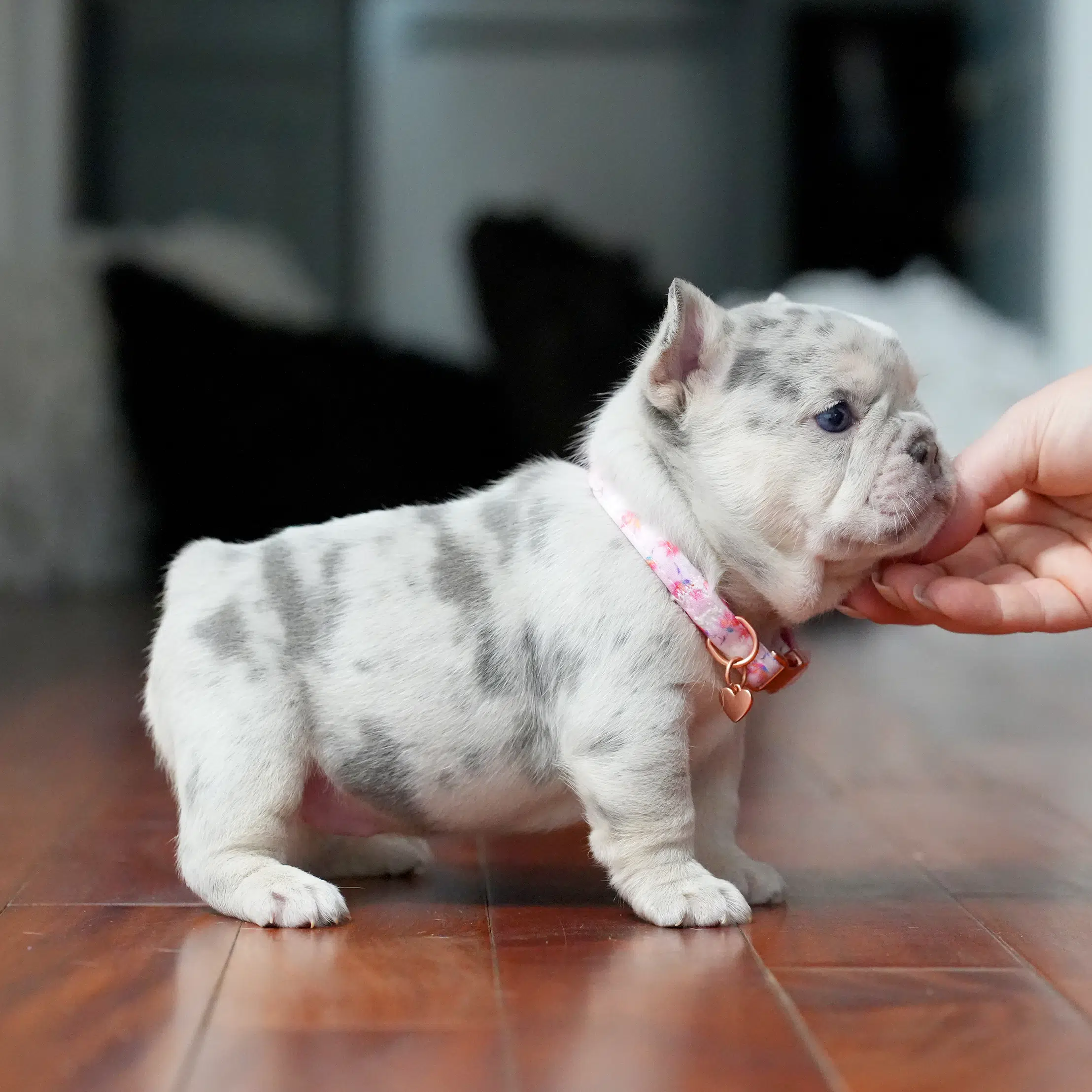 Puppy Profile: Rare Female French Bulldog This charming Frenchie boasts a unique coat and a calm, affectionate nature. Thanks to her gentle temperament, she is a wonderful match for seniors or as a loyal family pet. Her compact size ensures she fits perfectly into both luxury estates and cozy apartments.