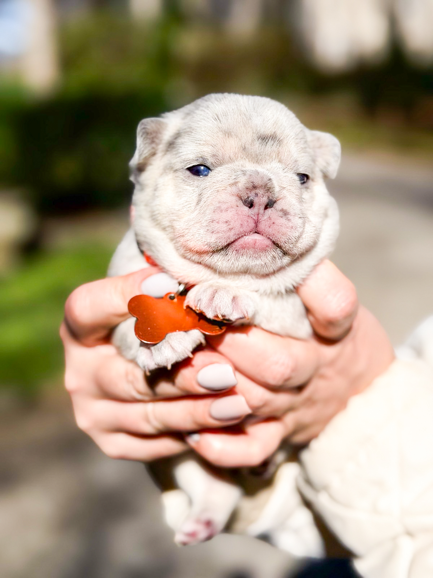 This captivating Blue Merle Tanย Female French Bulldog possesses a remarkably gentle temperament, having been nurtured within a loving family household. Due to her extensive socialization, she serves as an ideal companion for active individuals or a loyal friend for seniors. Her versatile and compact size makes her perfectly suited for both large estates and city apartments, ensuring she fits seamlessly into your lifestyle.