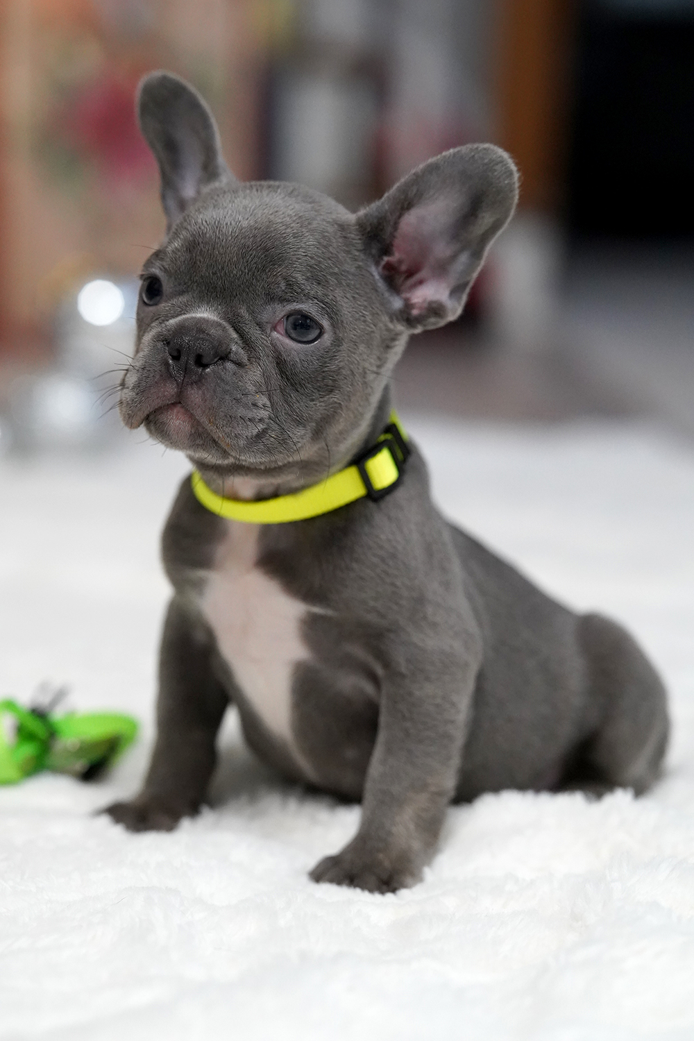 Meet the Puppy This Male Blue French Bulldog is remarkably gentle and well-socialized. Raised in a loving home, he is a perfect match for any lifestyle. With his balanced temperament, he adapts easily to both city apartments and spacious suburban residences.
