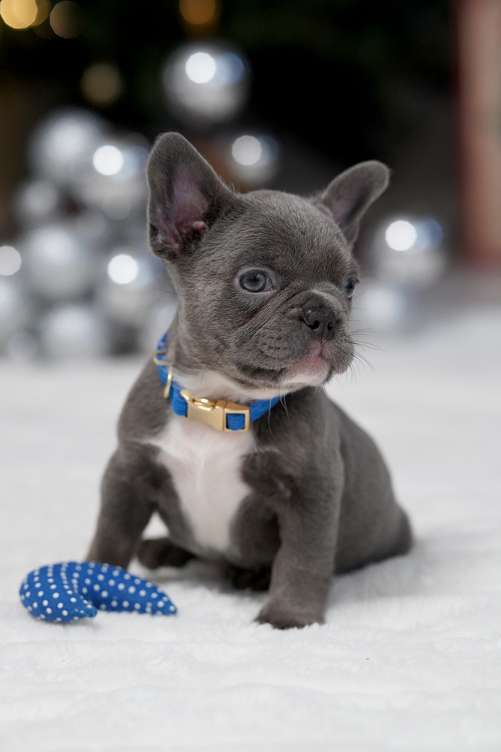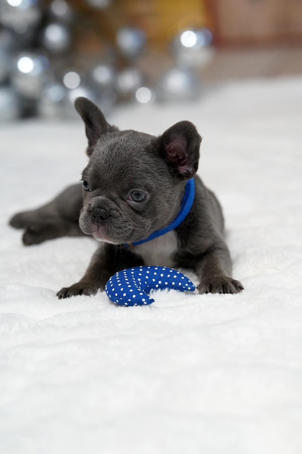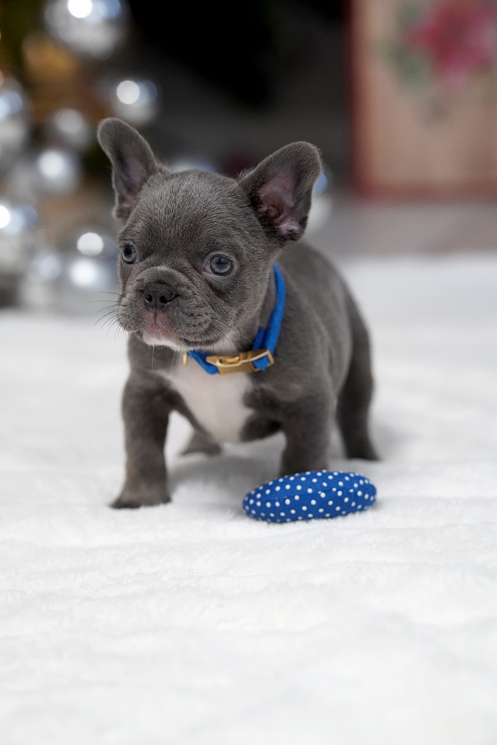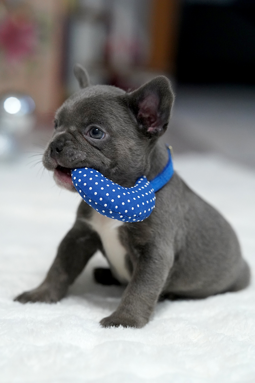 Puppy’s Personality This Male Blue French Bulldog is a gentle companion known for his sweet nature and intelligence. Raised as a part of our family, he is exceptionally well-socialized with children and other dogs. His adaptable spirit makes him a perfect match for urban apartments or spacious country estates alike.