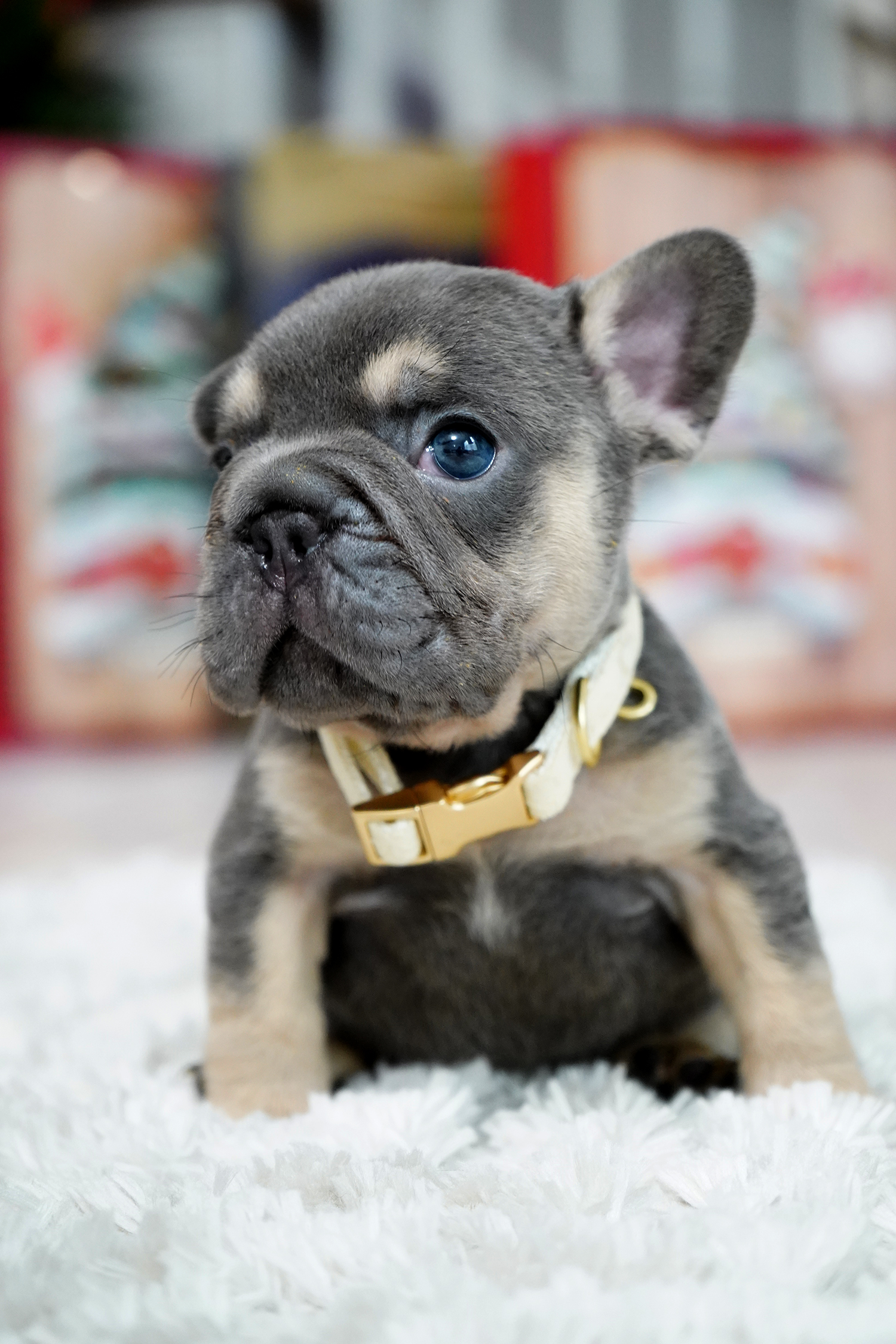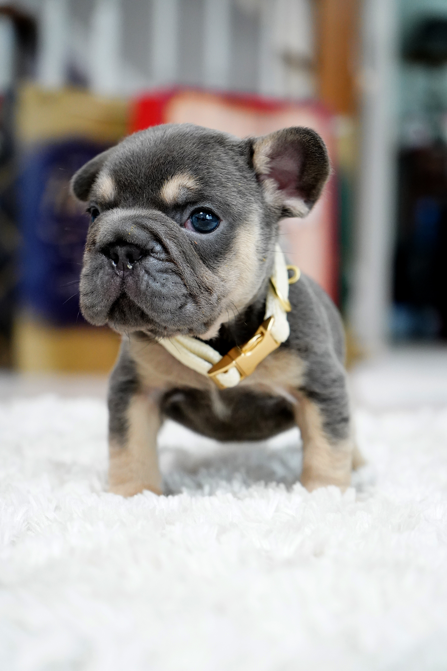 This charming Blue Tan French Bulldog is ready for dispatch! The puppy has reached 8 weeks of age, has passed all necessary final checkups, and is fully prepared to travel to you to start a new life in your home.