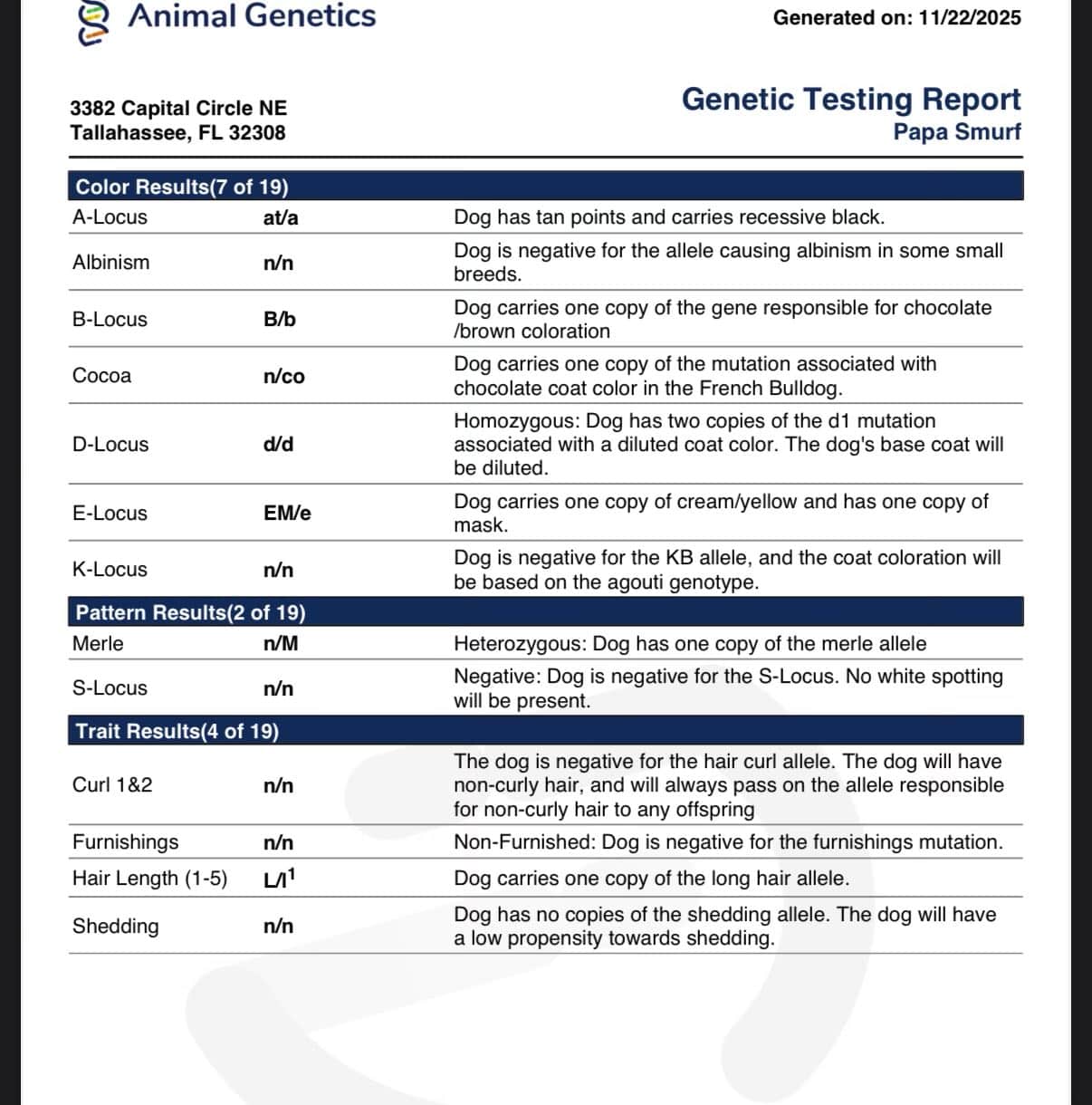 Color DNA: (at/a, B/b, n/co, d/d, EM/e, n/M)