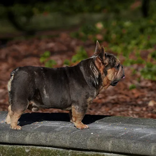 Structure & Stance: Perfectly meets the breed standard: short muzzle, strong bone, wide chest, and confident stance.